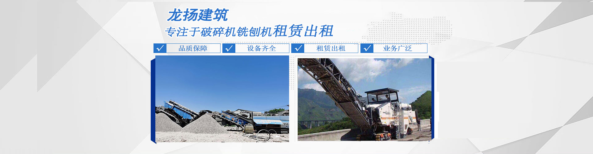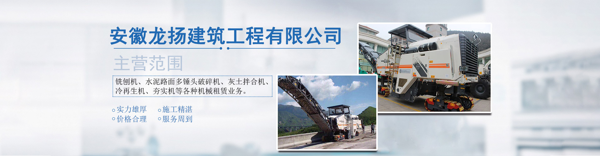 專注于租賃設備:主要租賃銑刨機、水泥路面多錘頭破碎機、灰土拌合機、冷再生機、夯實機、攤鋪機、挖掘機、粉料撒布車、平地機、清掃機、壓路機等各種機械設備